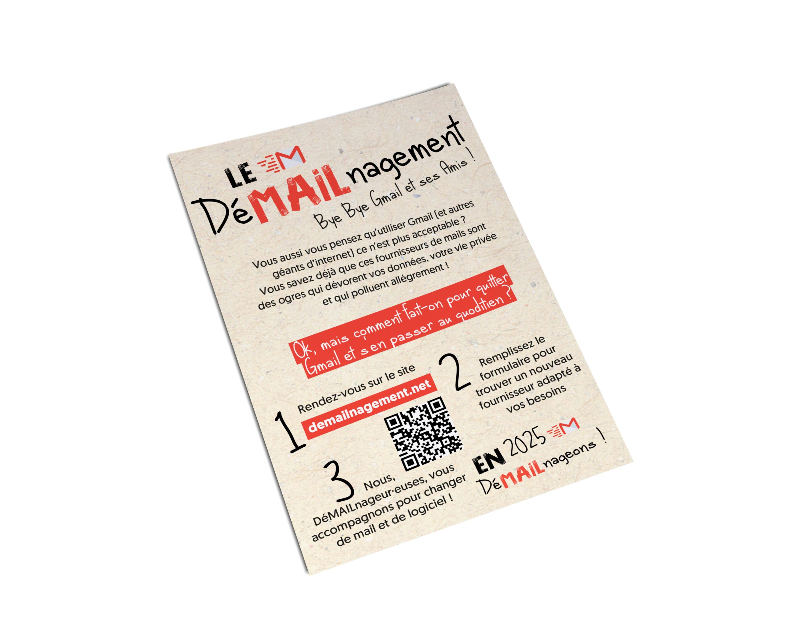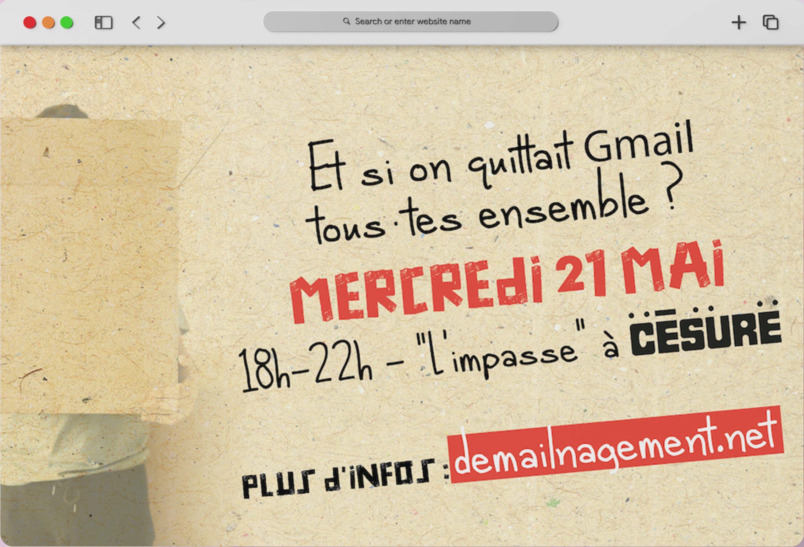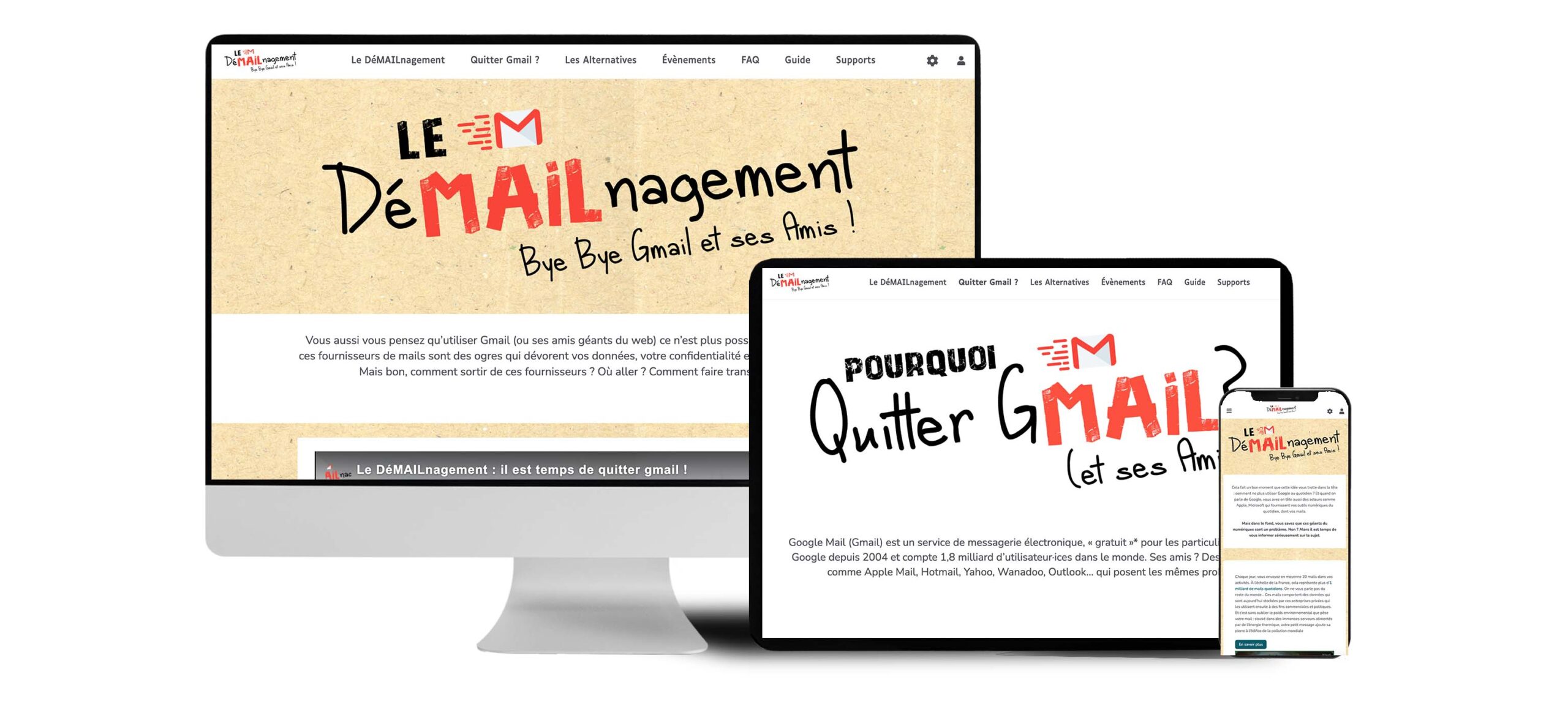Le DéMAILnagement est une campagne de communication co-organisée par un groupe de CHATONS qui encourage un maximum de citoyen·nes à quitter gmail pour un autre service de mail libre.
